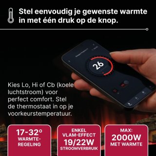 - Multifunctioneel: gebruik alleen de vlammen voor sfeer of schakel de verwarming in voor snelle bijverwarming van de ruimte.