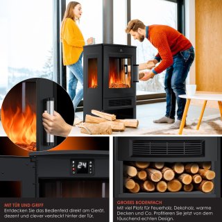 Creëer direct een warme, sfeervolle en slimme plek in huis met de KESSER elektrische haard. Deze vrijstaande kachel combineert een elegant, tijdloos uiterlijk met praktische functionaliteit: royaal opbergvak, stille en efficiënte verwarming, uitgebreide sfeerverlichting en slimme bediening — alles ontworpen met comfort en veiligheid voorop.