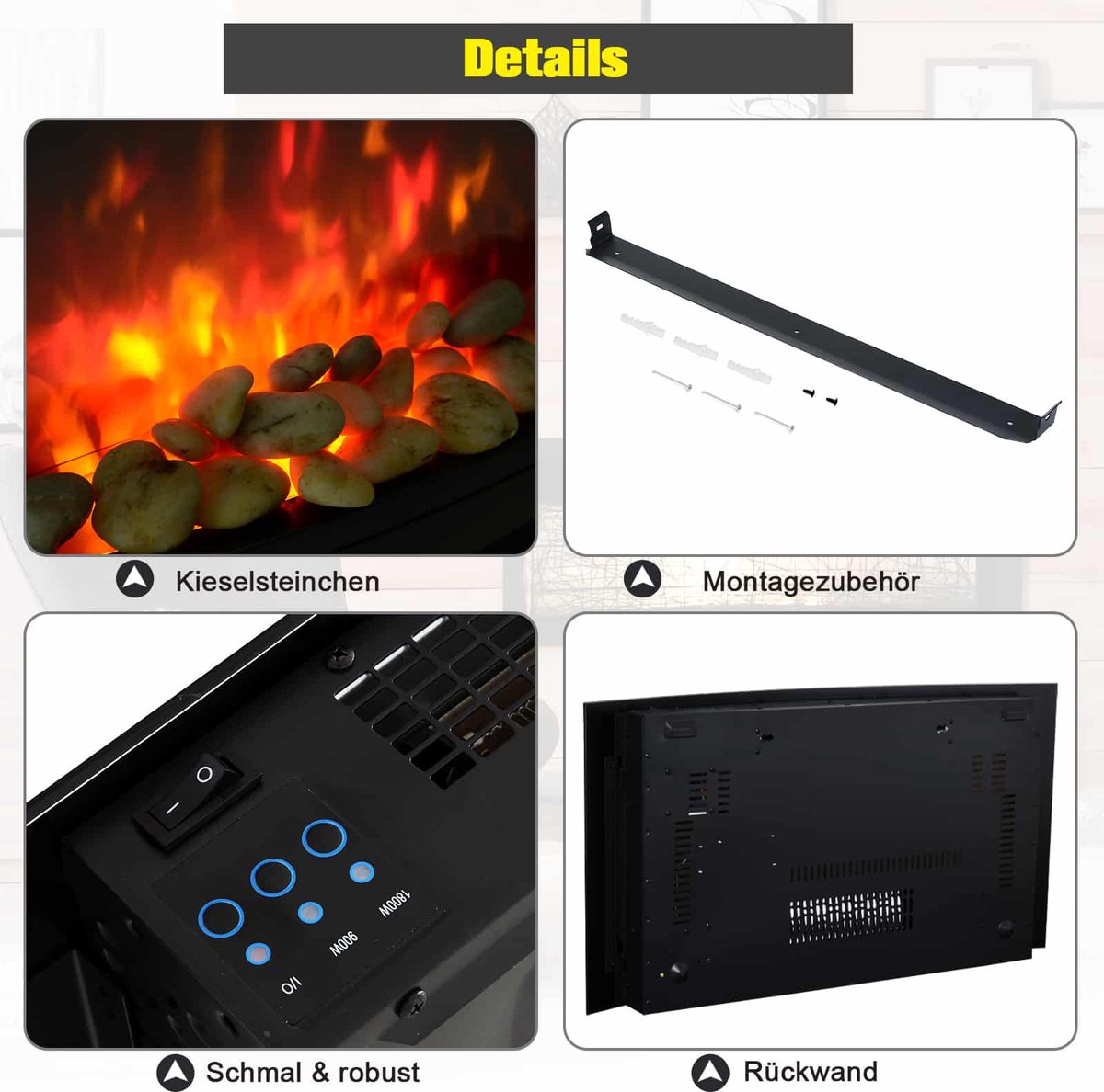 - Stijlvolle en moderne uitstraling: Met een compact formaat van 65 x 11,4 x 52 cm en een elegante zwarte afwerking, past deze haard perfect in elk interieur. Het lichte gewicht van slechts 12,9 kg maakt het nog praktischer om te plaatsen en te verplaatsen.